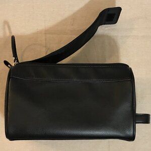 Guess Men's Black Leather Bag – Grooming/Shaving Travel Dopp Kit