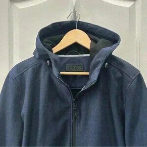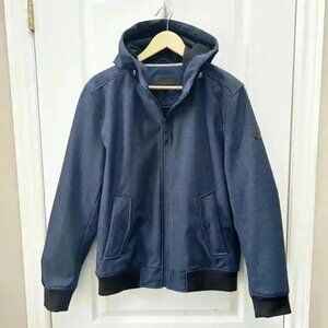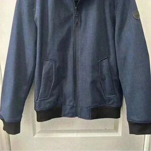 Guess Mens Bomber Jacket Hooded Casual Fall Navy Blue and Black Size Medium