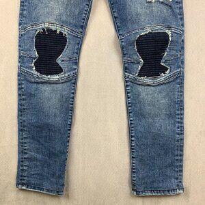 Guess Mens Pants 32 Blue Distressed Moto Jeans Slim Ripped Streetwear 32x30