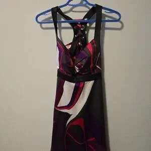 Satin like look, halter vintage mini dress from Guess. Circa 2008.