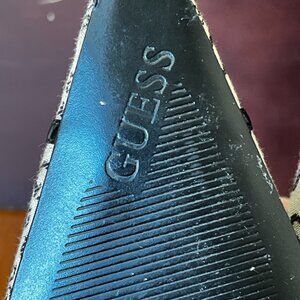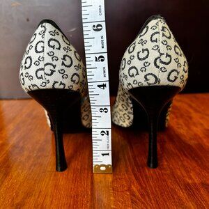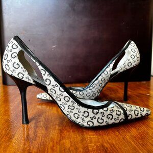 Iconic 90s/Y2K Guess monogram canvas pumps, in off-white colour, with black leather accents.