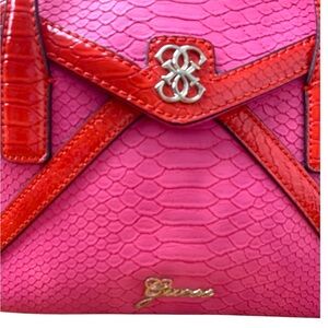 Guess NWOT Hot Pink w Red Faux Alligator Bag, Gold Hardware.