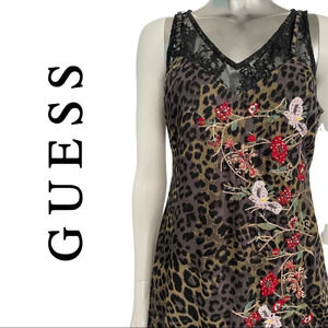 Guess Odessa Slip Dress Embroidered Floral Front Detail Lace Small