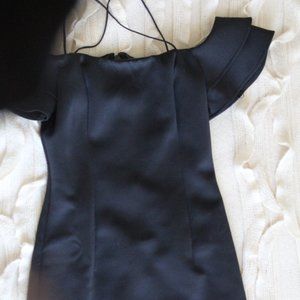 Guess black off the shoulder mini dress. The dress is brand new, never worn. The fabric is thick, soft, has some stretch and is not see-through at all. There is a zipper in the back. There is also a nice detail to this dress: criss-crossing straps around the neck area.