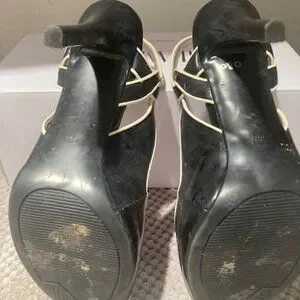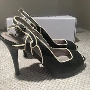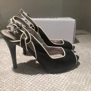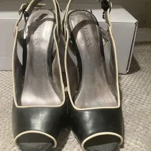 Guess Black Patent open toe Heels. Worn twice however signs of aging.