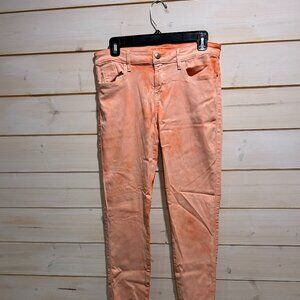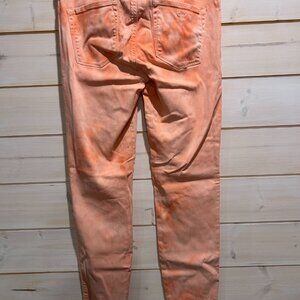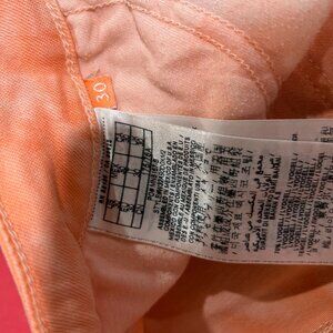Waist 30", Rise, 8.5", Inseam 28, Leg opening 5". Some fraying at pocket and leg.