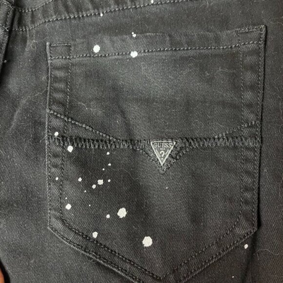 Guess Paint Splatter Black Tapered Slim Denim Jeans