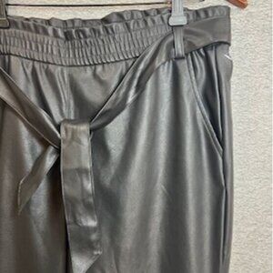Guess Pants Womens Size Medium Leather Elastic Waist Belted Black High Rise