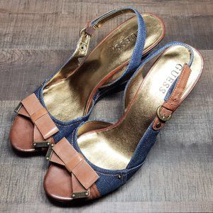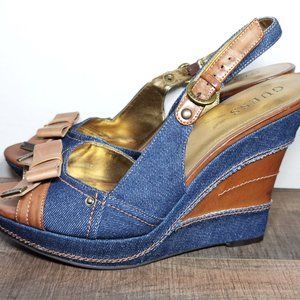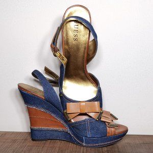 New Guess platform wedge. I wore them one time for a home party and found that the platform which is 5 '' too high for me. Since then they were in my closet for over 8 years with no reason, no wearing or seeing the light Lol They need a new life, definitely!