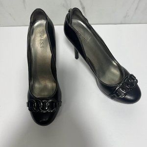 Guess Pump Heels Women 8.5M Black Slip On Round Toe Platform Stiletto Leather