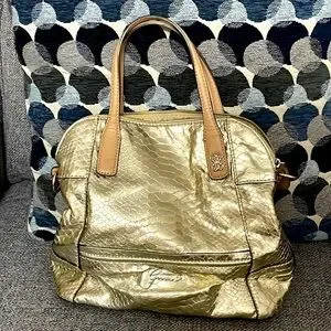 Gold faux snake skin purse. Gently used and in good condition. It comes with a dust bag to protect it. A cross-body strap came with it, but I no longer have it.
