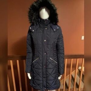 Guess Quilted Faux Fur-Trim Puffer Jacket