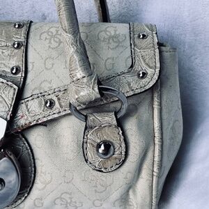 Guess Rare Vintage Hand Bag Small Purse Monogram Beige Y2K 90s Tapestry Metall