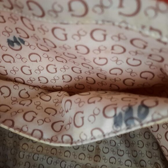 Guess Red Shoulder Bag - Large Logo Shoulder Bag - 15 in wide; 10 in high - Pre-Owned - Some wear on strap and bag corners; small stain and markings inside bag (see pictures)