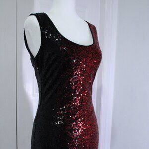 Guess Red and Black Rodeo Sparkly Sequin Midi Party Bodycon Dress Size Small
