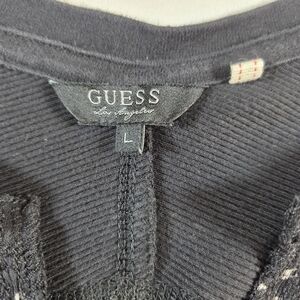 Stylish long sleeve tee by Guess. Features intricate graphic design. Comfortable and versatile. Length 29" Bust 42" Sleeves 24"
