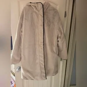 Brand new with tags, Guess reversible Jacket! Outside features a nice sleek black quilted look with a hood and spacious pockets, reverse it and it is a nice warm beige faux fur with pockets and hood. Gorgeous jacket!