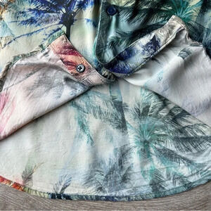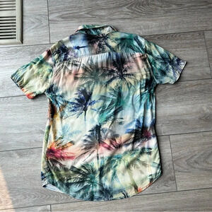 Lightweight button-down shirt enhanced with an allover palm tree print.