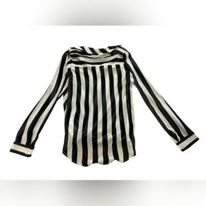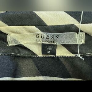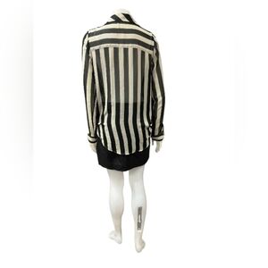 Guess Sheer Long Sleeve Top Striped Creme Black Size Medium EUC