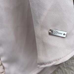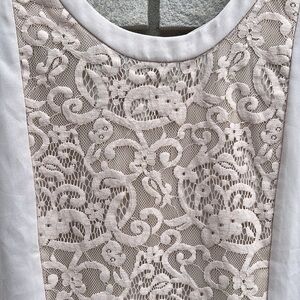 Guess blouse. lightweight and flowy with lace panel in the front (lace has blouse material underneath so not see through). Short sleeve, loose through body, rounded bottom hem and zipper access at back neckline. Very good pre-loved condition, no marks or damage to note.
