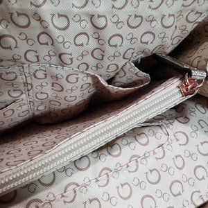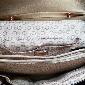 Guess Shoulder Bag Purse Adjustable Strap Rose Gold Metal Hardware Pom Pom NWOT