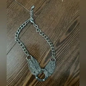 Stylish Guess necklace with silver design. Adds flair to any look.