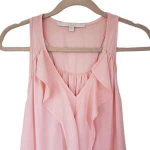 Guess Sleeveless Ruffle Front Flounce Racerback Blouse in Soft Blush Pink