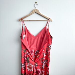 Guess Sleeveless Spaghetti Strap Coral Red Floral Jumpsuit Beach Women's 8