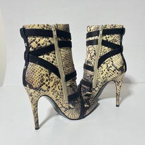 Guess Snake Printed Pointed Toe Stiletto Heel Multi Tone Ankle Boot, Sz 7.5 M