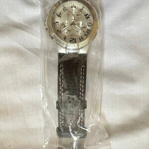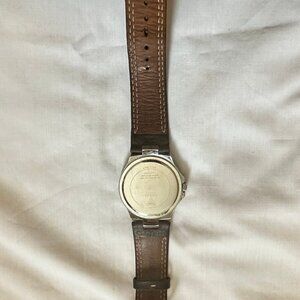 Guess Steel 190199G1 Men's Wrist Watch Brown Leather Band, New Battery, Quartz