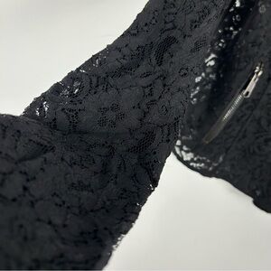 Elevate your wardrobe with this chic black lace jacket. Perfect for adding a touch of elegance to any outfit.