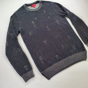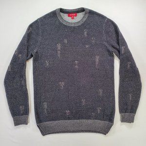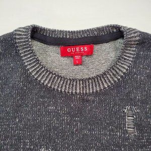 Guess Sweater Men Large Black Tight Knit Slim Oversized Tattered Look Split Hem