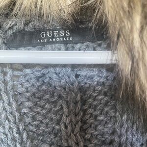 Guess chunky Knit Grey Short Sleeve Sweater With Faux Fur Collar. Perfect To Throw Over Any Dress Or Shirt. Size XS. Perfect Condition!