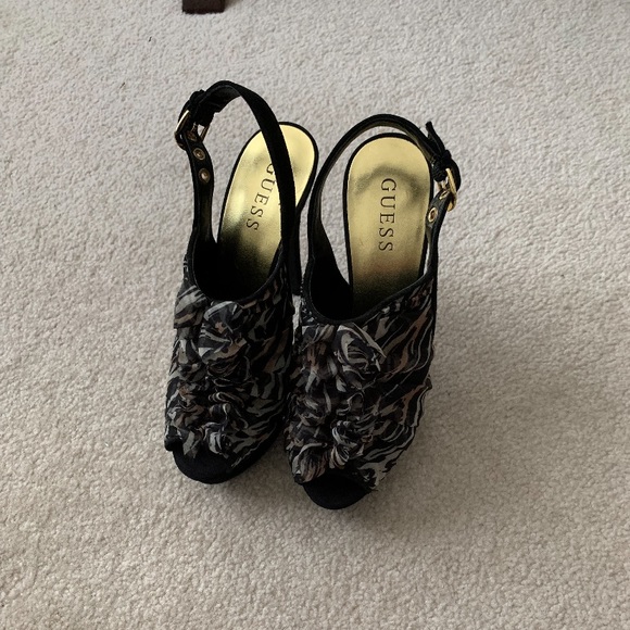 Guess Black suede & tiger print sling back Size 6 5” heel wore once