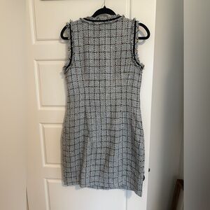 Elevate your style with this chic tweed sleeveless dress. Featuring a sophisticated gray hue, this dress is perfect for any occasion. Enjoy the elegant design and comfortable fit.
