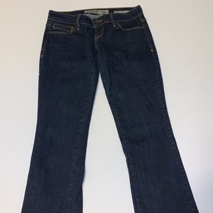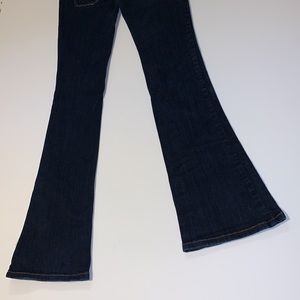 EUC Guess “Ultra Low Rise Boot Cut” flared dark denim jeans in women’s size twenty five.