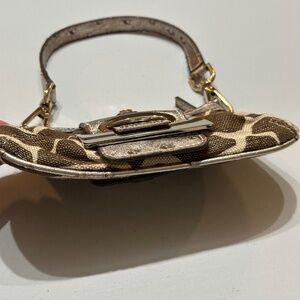 Guess Vintage Y2K Gold Giraffe Wristlet Mini Purse Bag Brown and Tan