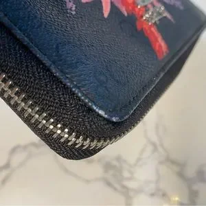 Colour is dark blue with red pink and purple floral pattern. Interior is black.