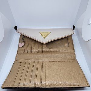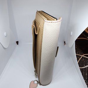 Black/Tan/Beige with pink trim. Like new condition. Snap Closure
