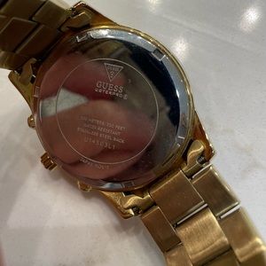 Woman’s guess Watch excellent condition. The links are missing but believe you can get them from the guess store or online. Also needs a new battery.