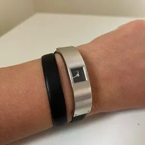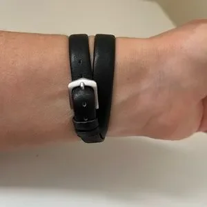 Beautiful Guess watch, with black twice wrap around leather band. The leather band is missing a small piece at the end, but this is hardly noticeable. The watch needs a battery.