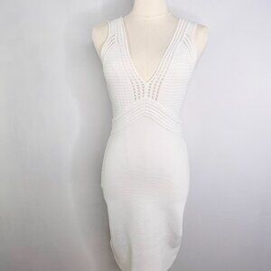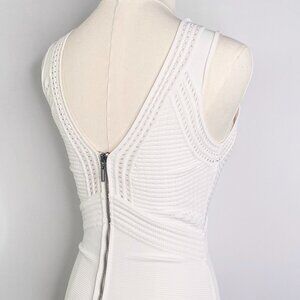 ⋆ White bondage ribbed form fitting v-neck dress. A very popular style for formal events / clubbing in the 2010s.