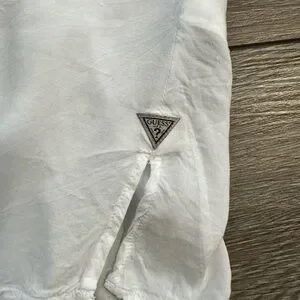 Guess White Button-Down Shirt, woman’s XL, lightweight 100% Rayon (Viscose)