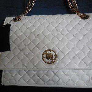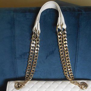 The chain and rivets in gold tone are a beautiful contrast to the cream white panes.