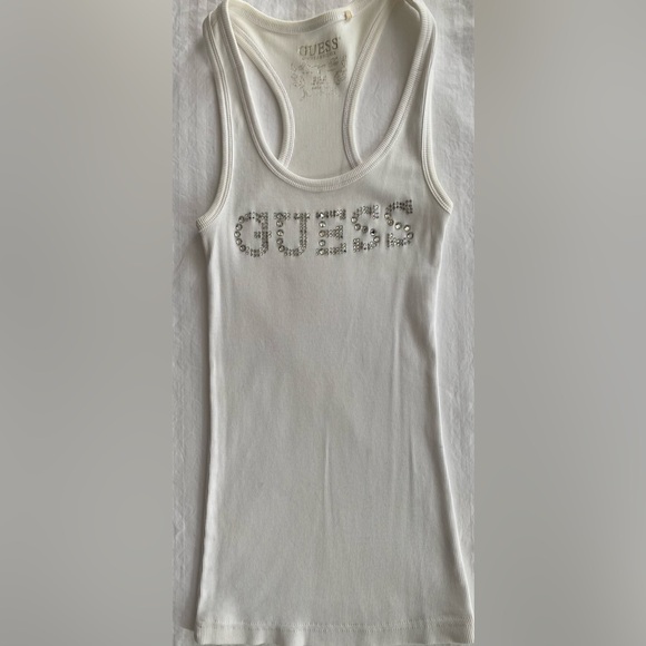 Guess White Ribbed Tank with Rhinestone Logo -Small