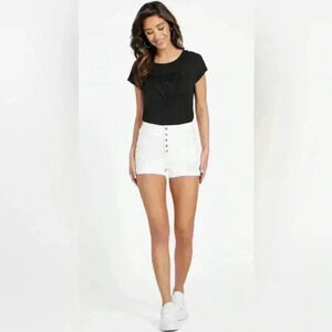 Guess White Rolled Cuff Distressed High Rise Shorts Size 31