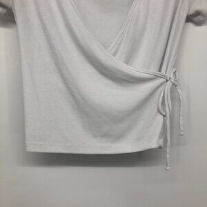 Guess White ribbed surplice V-neck crop top side tie size Medium