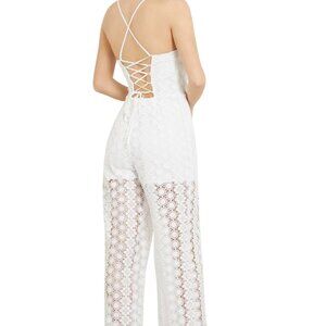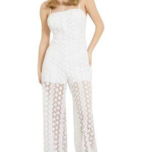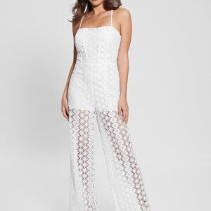 Guess Women's Elle Sleeveless Open-Back Lace Jumpsuit- White- Size S