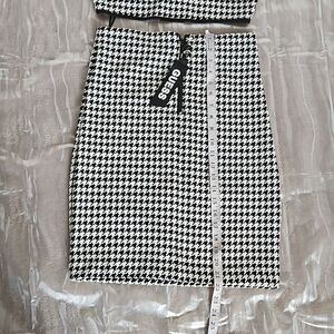 Guess Women's Houndstooth 2 Piece Matching Top & Midi Skirt Medium Black & White
