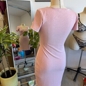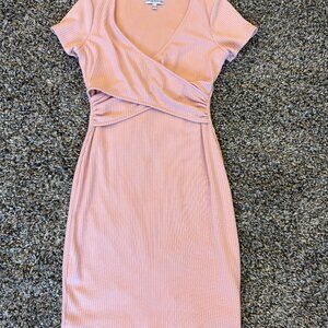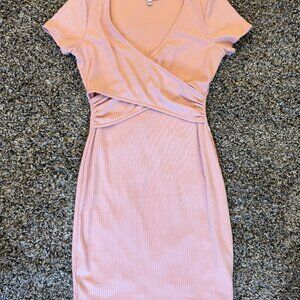 💖 Guess Women’s Ribbed Wrap Dress in soft baby pink.
